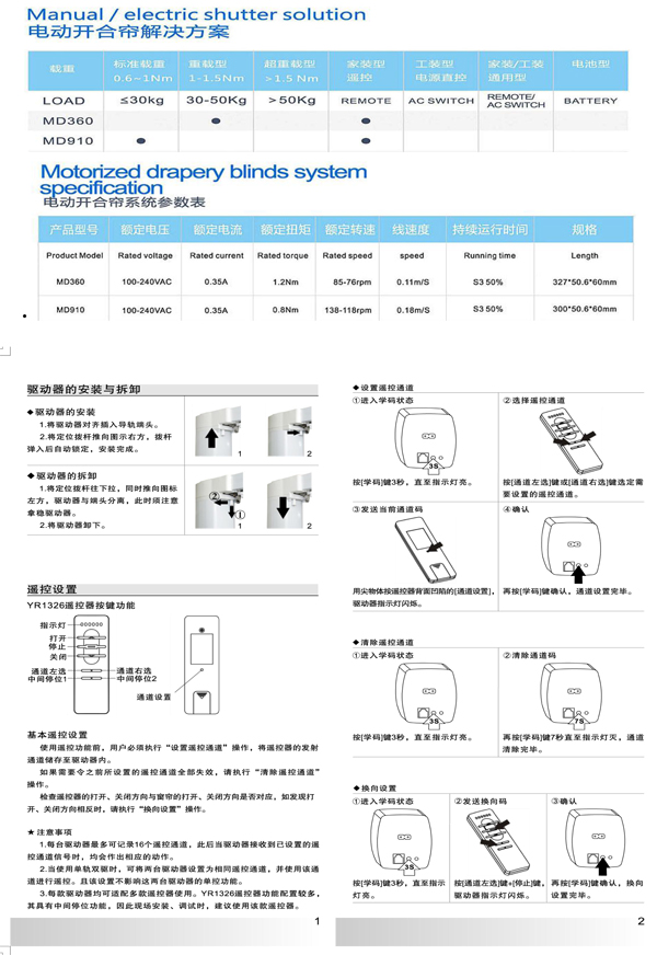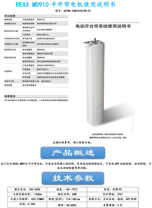 REAX MD910平开帘电机使用说明书